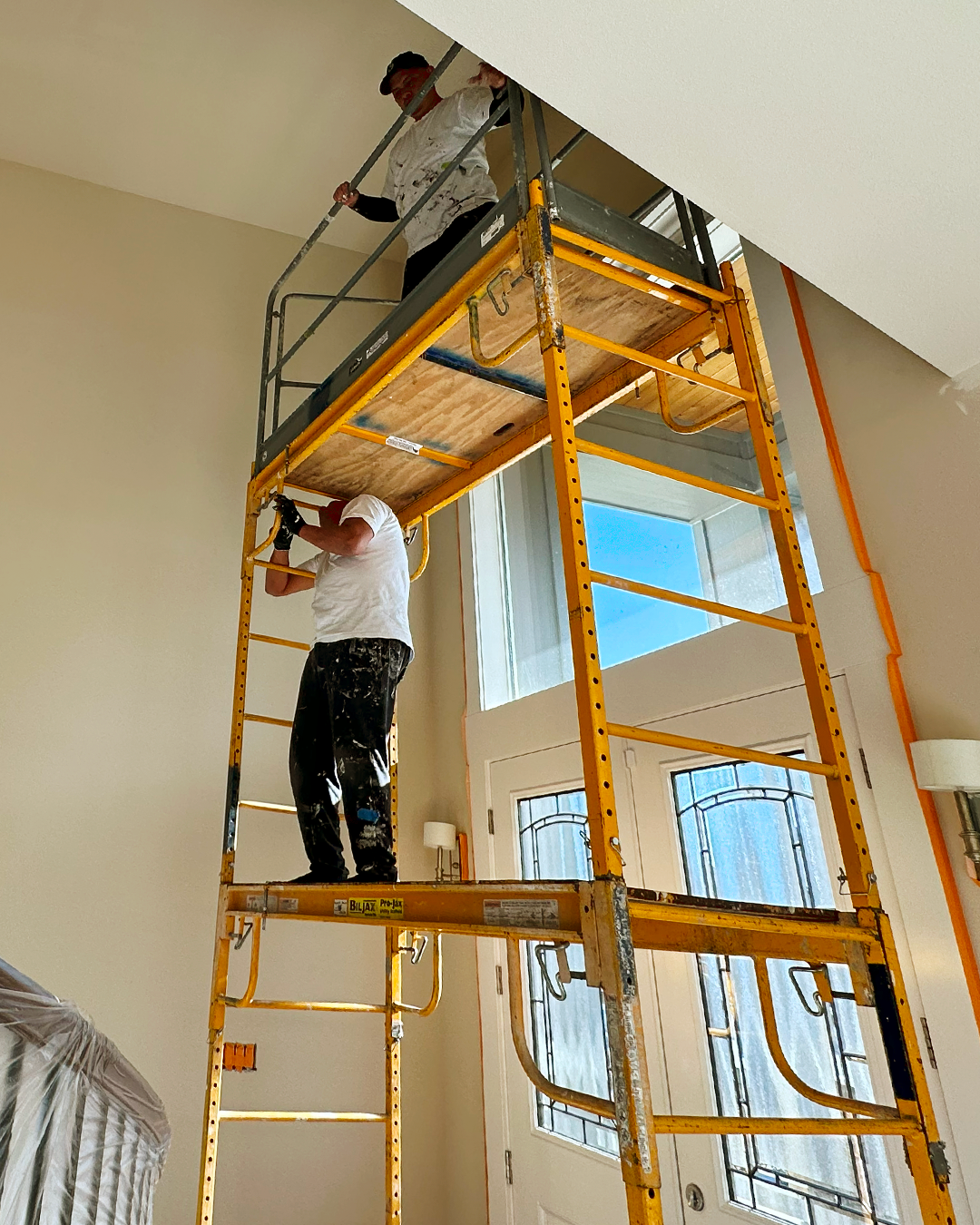 Premium interior painting executed with meticulous care at every stage: full protection of furniture, lamps, and surfaces using specialized plastics and tapes, wall and ceiling preparation with repairs and fine sanding. Application of uniform coats in light tones that maximize brightness and spaciousness, achieving smooth, durable, and flawless finishes. A professional process that guarantees cleanliness, precision, and impeccable results.