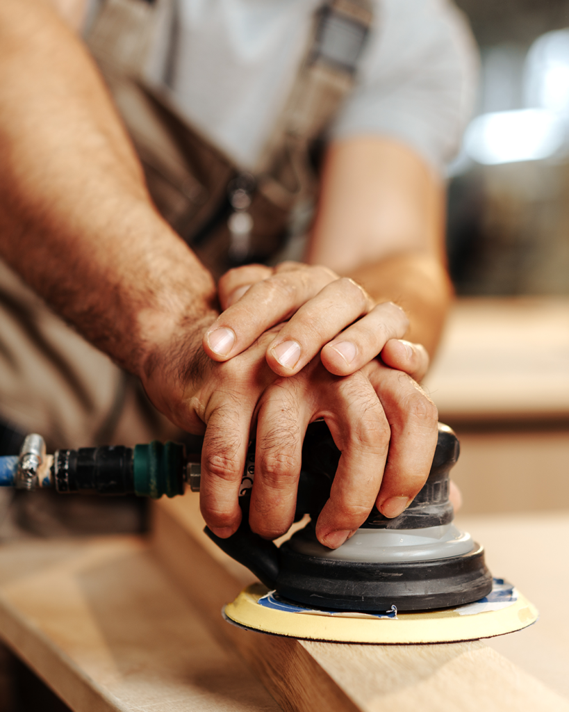They progressively sand with professional tools and abrasives—from coarse to fine grits—achieving a silky-smooth, uniform surface while preserving wood grain and avoiding swirl marks or over-sanding.